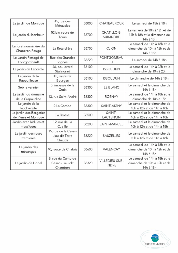 Cette année, ce sont 29 jardins répartis dans l’Indre et le Cher qui participeront à cet événement. Les propriétaires de ces jardins partageront avec les visiteurs leurs techniques écologiques, offrant ainsi une opportunité unique de découvrir des méthodes de jardinage durables et innovantes.
