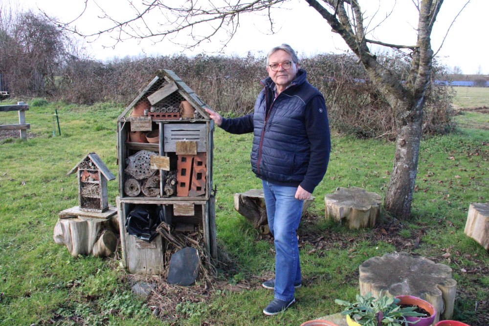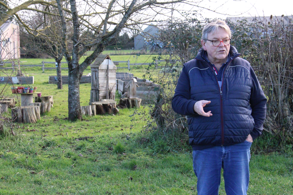 Monsieur Christian Desmare un des bénévoles fondateurs nous fait visiter le jardin citoyen de Nérondes.