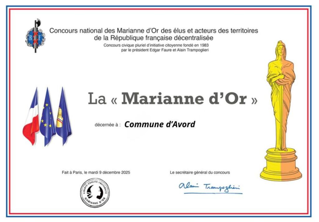 La commune d’Avord reçoit la Marianne d’Or : Un prix d’excellence pour un projet innovant et respectueux de la biodiversité