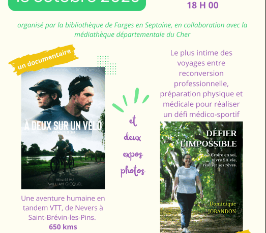 Vendredi 10 octobre à la Maison des Jeunes, la Bibliothèque d’Avord invitait petits et grands à embarquer pour une animation conviviale placée sous le signe du voyage et des souvenirs. Portée par la Médiathèque départementale du Cher et Monchermedia, la soirée a enthousiasmé des participants de tous âges, venus partager leurs anecdotes, photos, cartes postales […]